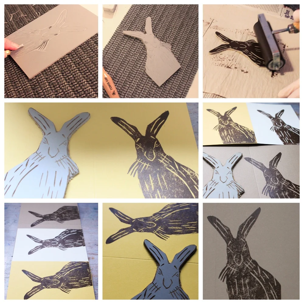 Julie brought her inspiration into fruition, producing a lovely chocolate brown hare, by mixing vermilion, cobalt and orange relief printing ink.